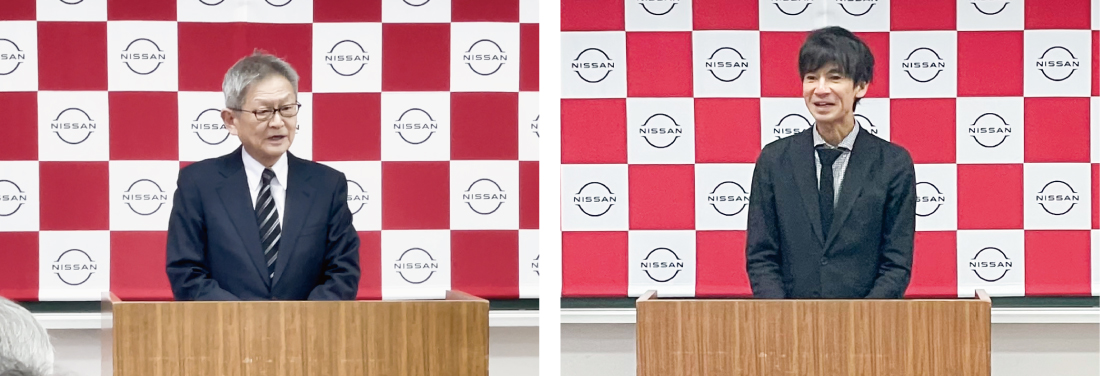 2025年12月8日(月)には寄贈式が執り行われ、当日は弊社代表取締役社長 上原洋明(右)と、新潟市社会事業協会 理事長 高橋秀松様(左)よりご挨拶をいただき、目録の贈呈が行われました。